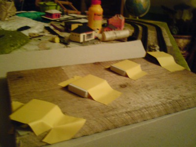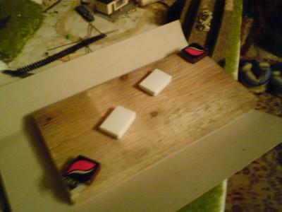 A ke stavbě... chvíli jsem hledal, ale po krátké chvíli jsem našel malé prkánko ,nejspíše ze smrku. šíře je dosti velká, takže bude diorama i dosti težká, ale co... těžkat si ji snad nikdo nebude.. :D jinak na samotnou trasu koleje jsem si vzal krabičky od sirek a srovnal jsem si je tak, jak je to vidět na fotce..