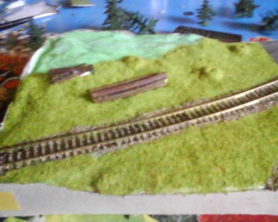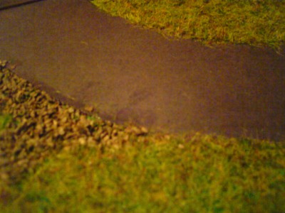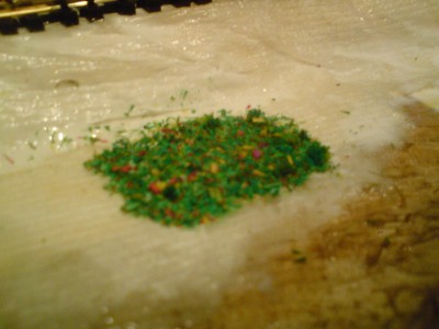 A hle, zkušební travní "flek". Nevypadá to zas tak zle, ale je to takové "starožitné". Proto jsem nahradil statickou trávou.