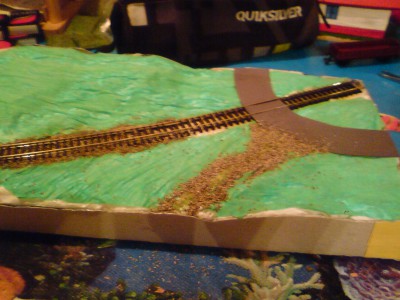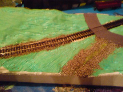Přilepil jsem cestu a vedlejší cestu (polní). Cesta je z šedé čtvrtky, pro mě je to ideální, a zas tak špatně to nevypadá.